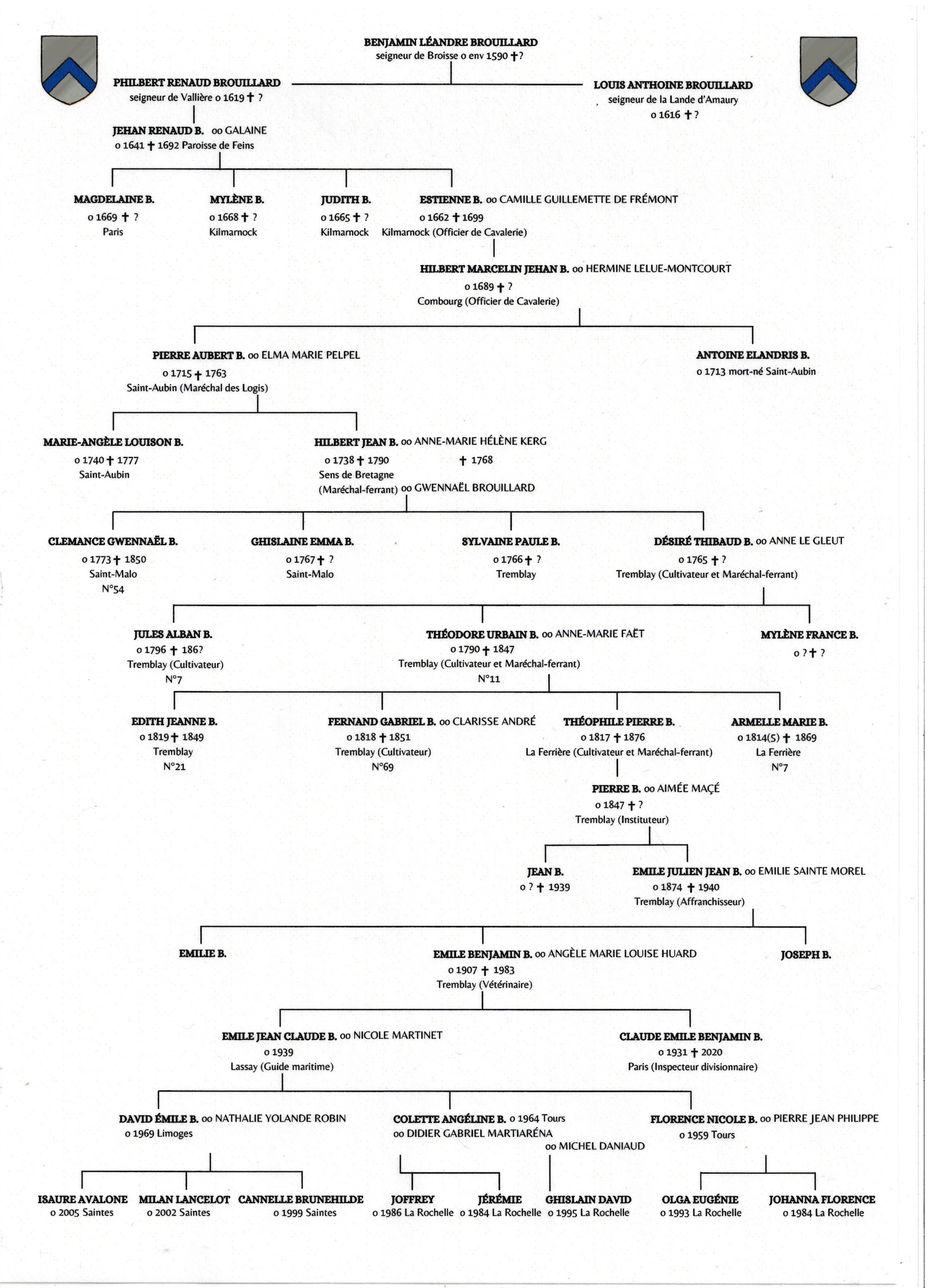 Généalogie considérée sous l'approche agnatique allant à l'essentiel, traversant les âges pour suivre ceux qui transmirent le nom patronymique : Brouillard, depuis des temps non déterminés pour lui adjoindre au passage du XVe, XVIe et XVIIe siècles le nom de terre : Broisse.